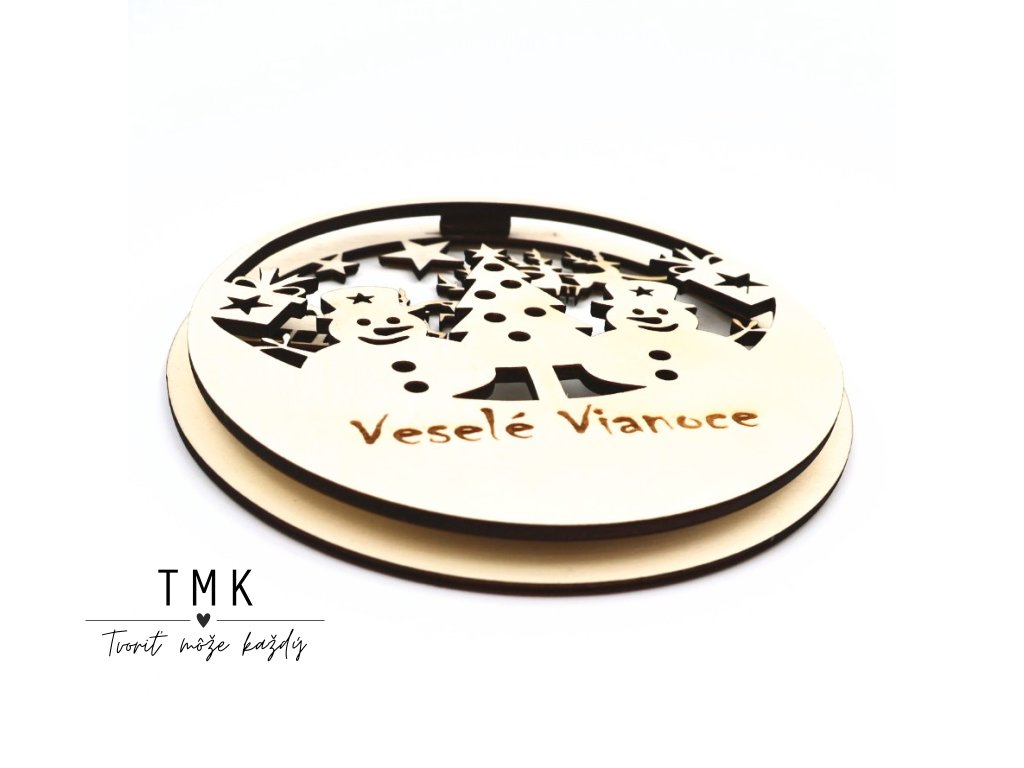 Vytvorte si jedinečnú dekoráciu za pomoci nášho 3D dreveného výrezu so vzorom Snehuliaci (nápis Veselé Vianoce).