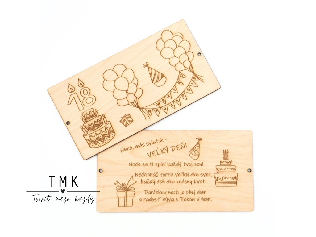 Drevená obálka - NARODENINY - vzor 5