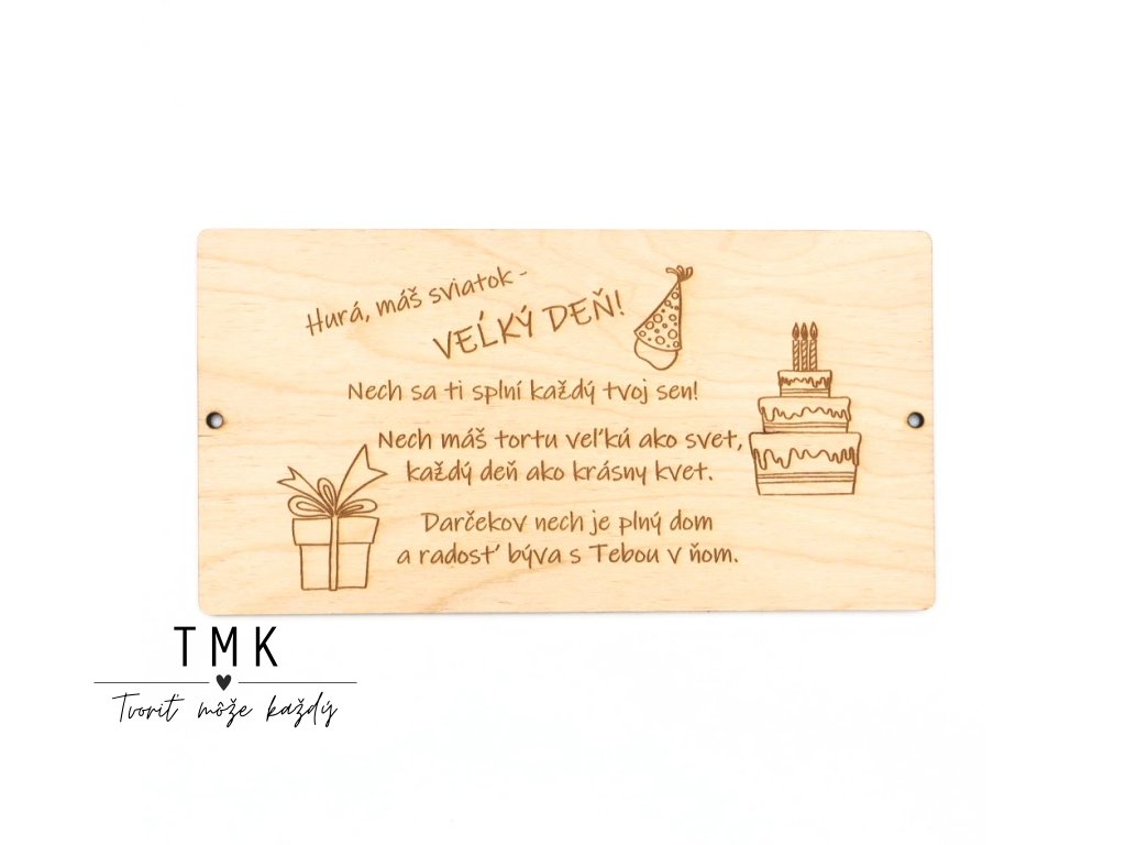 Elegantná drevená obálka určená na originálne a štýlové darovanie peňazí pre narodeninového oslávenca.