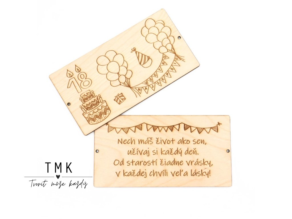 Elegantná drevená obálka určená na originálne a štýlové darovanie peňazí pre narodeninového oslávenca.
