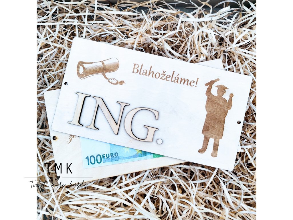 Štýlová drevená obálka, s ktorou darujete peniaze k promóciám originálne a elegantne. Vyrobená z dreva s precíznym gravírovaním, ktoré jej dodá moderný a jedinečný vzhľad.