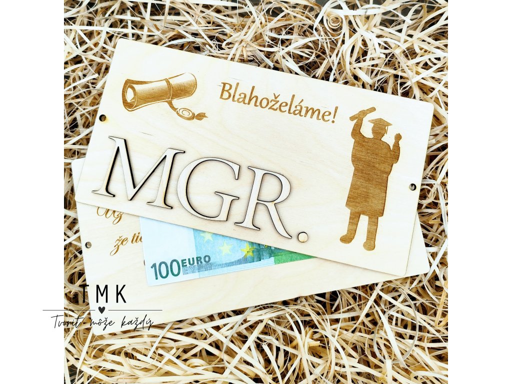 Štýlová drevená obálka, s ktorou darujete peniaze k promóciám originálne a elegantne. Vyrobená z dreva s precíznym gravírovaním, ktoré jej dodá moderný a jedinečný vzhľad.