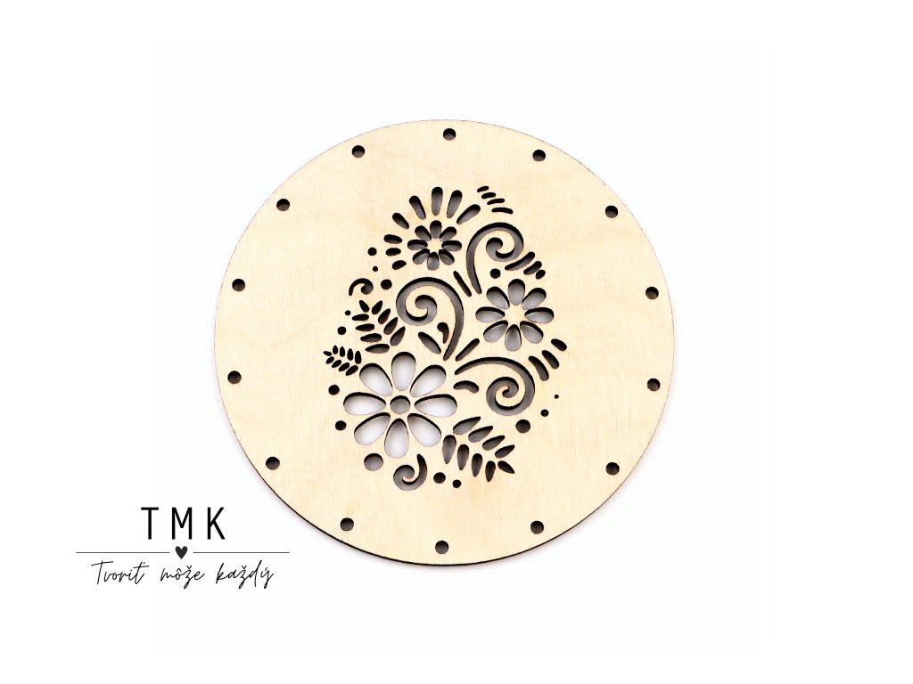 Vyrezávané pevné dno na výrobu podšálky s motívom kvetov vyrezaných do tvaru vajíčka.