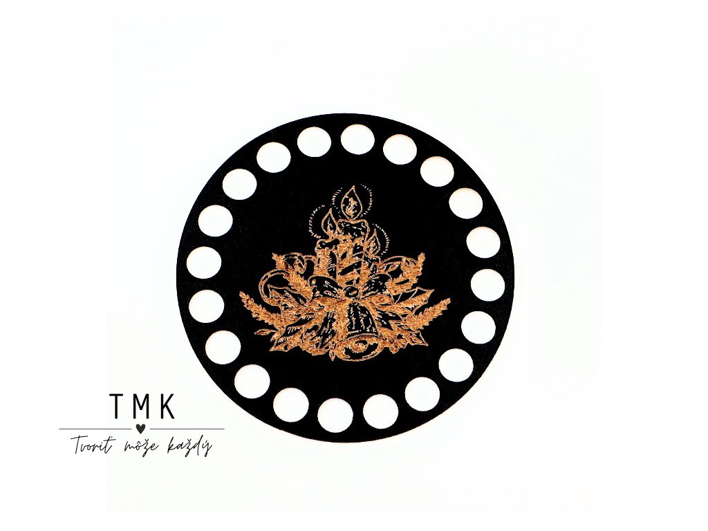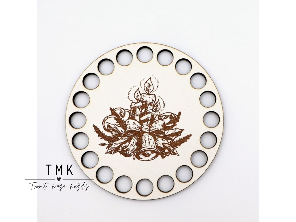 Gravírované pevné dno na výrobu podšálky s motívom vianočných sviec a zvončeka.