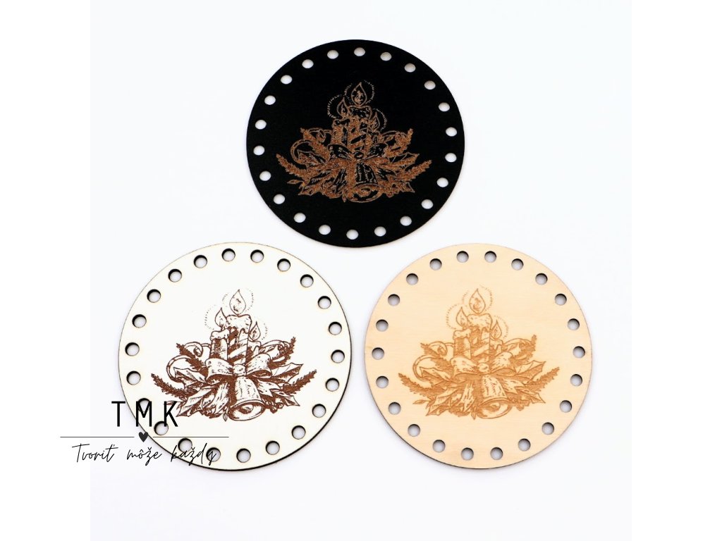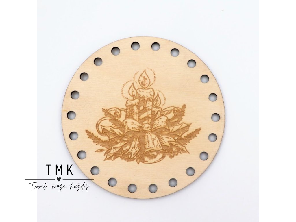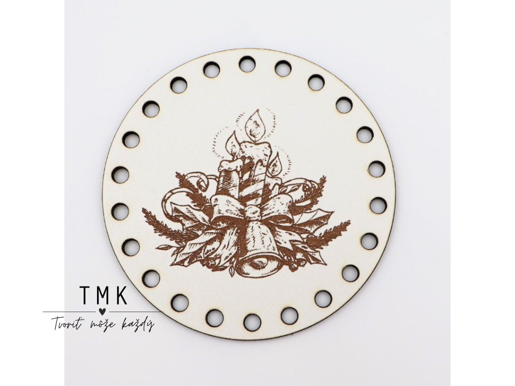 Gravírované pevné dno na výrobu podšálky s motívom vianočných sviec a zvončeka.