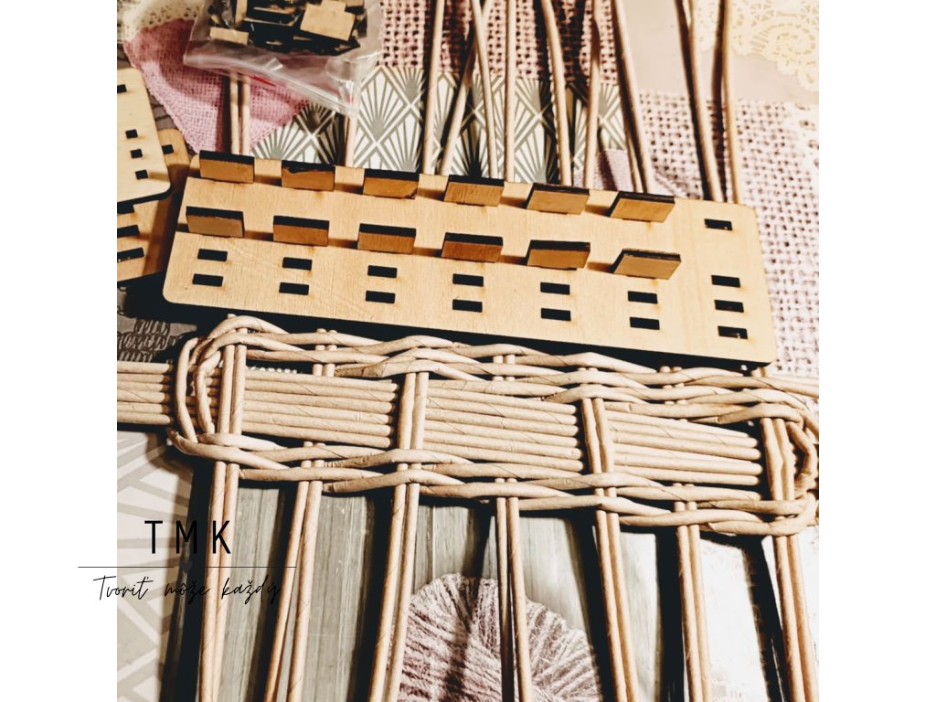 Pomôcka je navrhnutá tak, aby sa dala prispôsobiť hrúbka prútov na dne košíka. Priestor medzi kolíkmi si viete prispôsobiť na šírku 2cm, 3cm alebo 4cm. Tým, že kolíky nie sú pevne pripevnené viete si prispôsobiť aj šírku vypletaného vzoru.