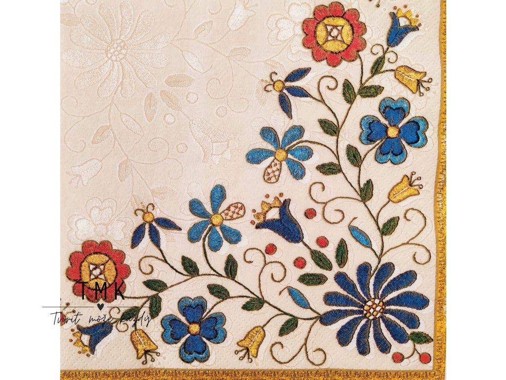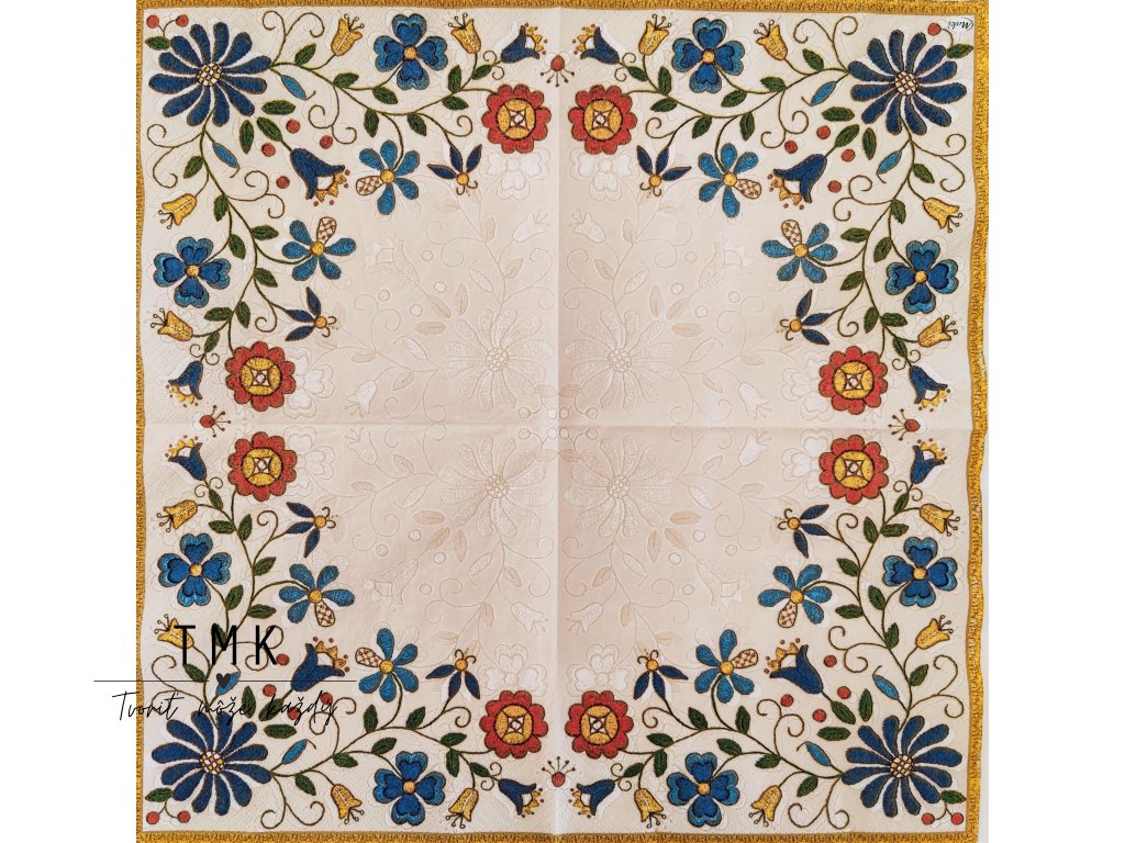 Servítka s ľudovým motívom. Vhodná na decoupage (servítková technika), ktorú viete použiť na naše dná a vytvoriť tak jedinečný košík.
