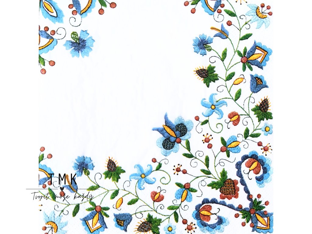 Servítka s ľudovým motívom. Vhodná na decoupage (servítková technika), ktorú viete použiť na naše dná a vytvoriť tak jedinečný košík.