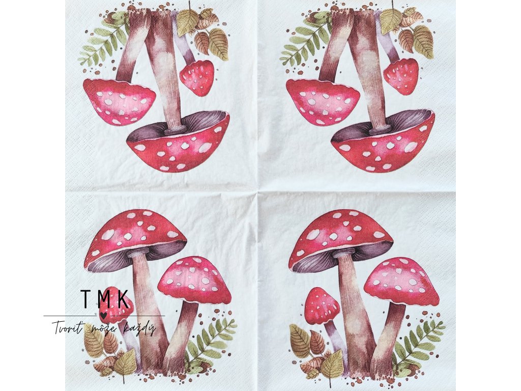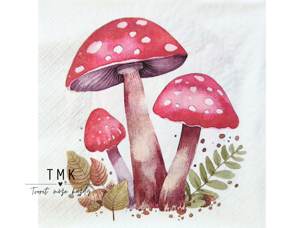 Servítka s motívom húb. Vhodná na decoupage (servítková technika), ktorú viete použiť na naše dná a vytvoriť tak jedinečný košík.