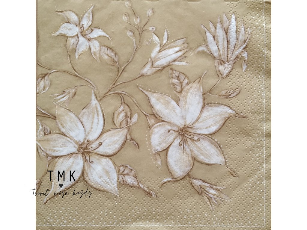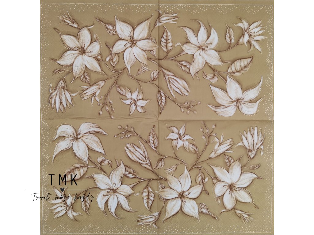 Servítka s motívom kvetov. Vhodná na decoupage (servítková technika), ktorú viete použiť na naše dná a vytvoriť tak jedinečný košík.