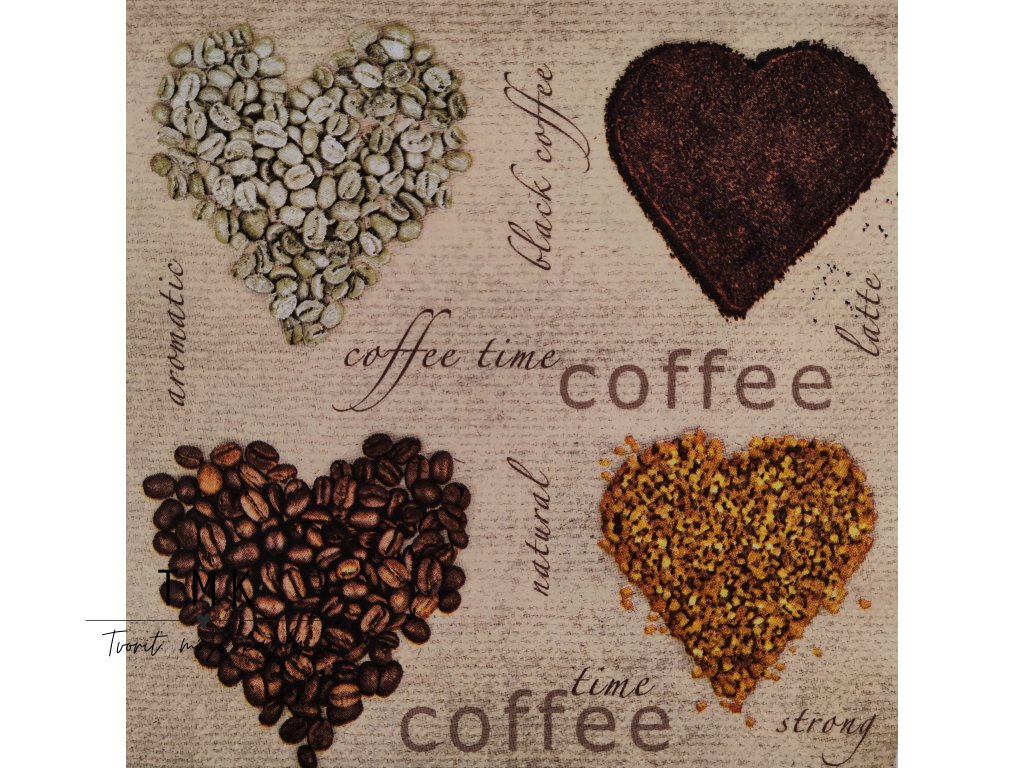 Servítka s motívom kávy. Vhodná na decoupage (servítková technika), ktorú viete použiť na naše dná a vytvoriť tak jedinečný košík.