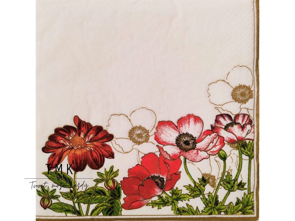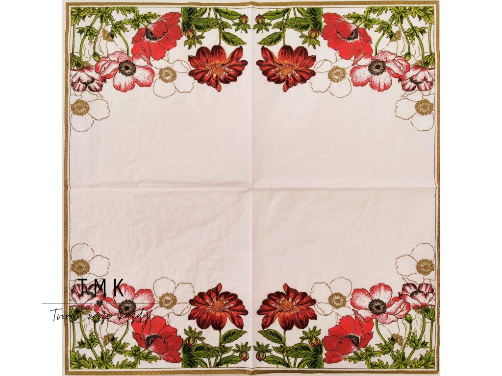 Servítka s motívom kvetov. Vhodná na decoupage (servítková technika), ktorú viete použiť na naše dná a vytvoriť tak jedinečný košík.