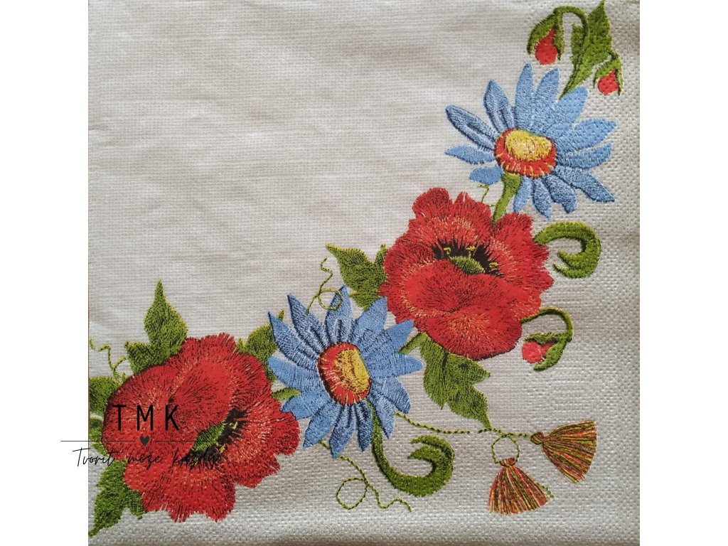 Servítka s motívom kvetov. Vhodná na decoupage (servítková technika), ktorú viete použiť na naše dná a vytvoriť tak jedinečný košík.