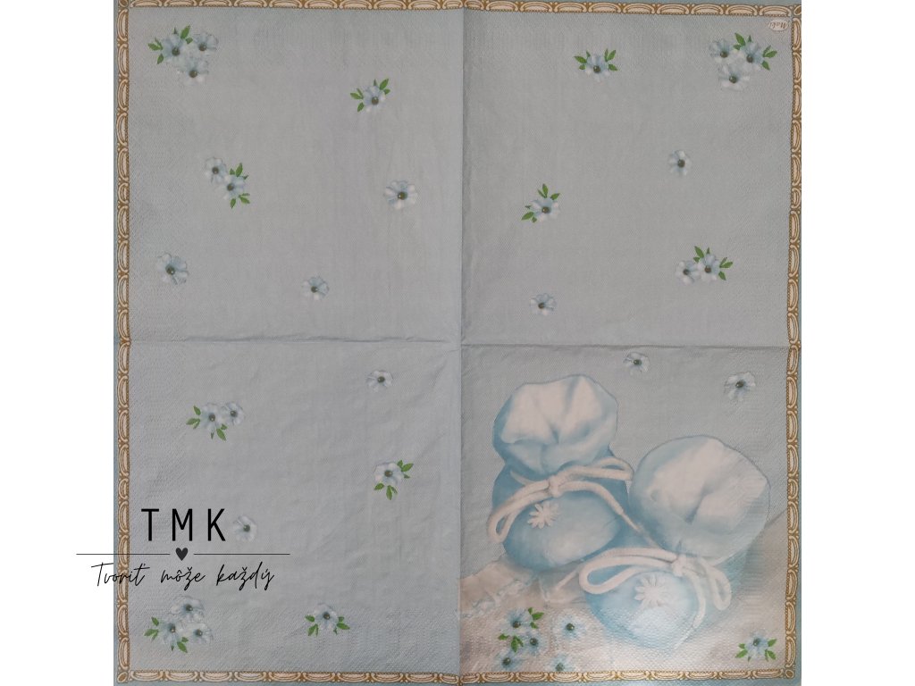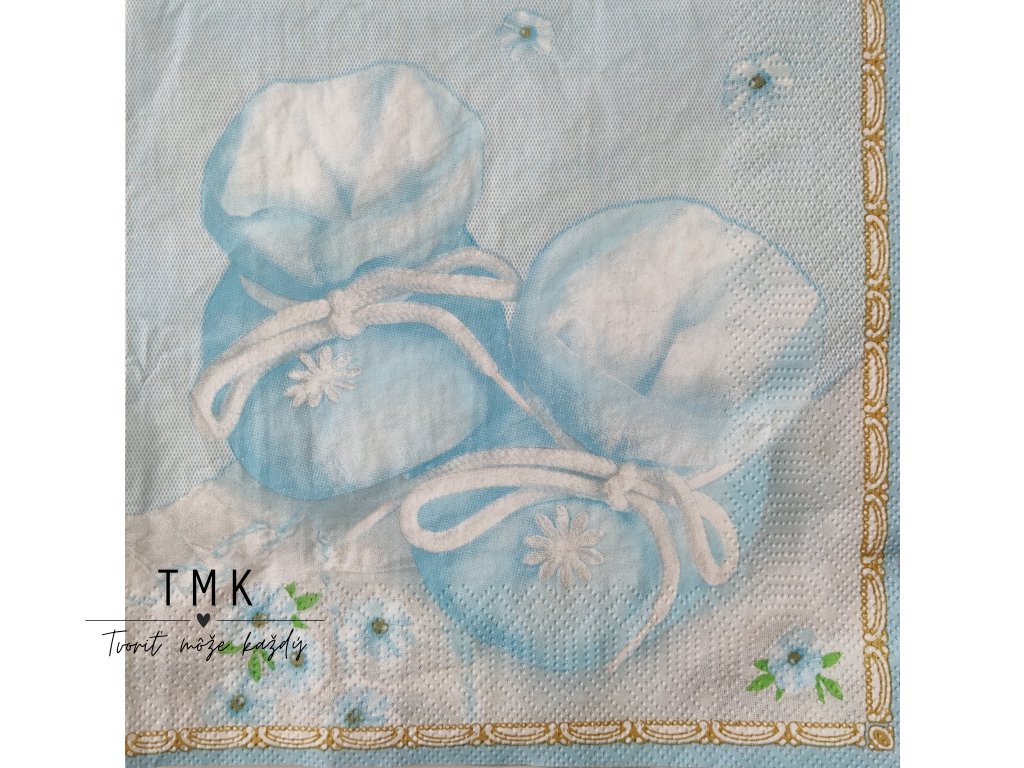 Servítka s detským motívom papučiek. Vhodná na decoupage (servítková technika), ktorú viete použiť na naše dná a vytvoriť tak jedinečný košík.