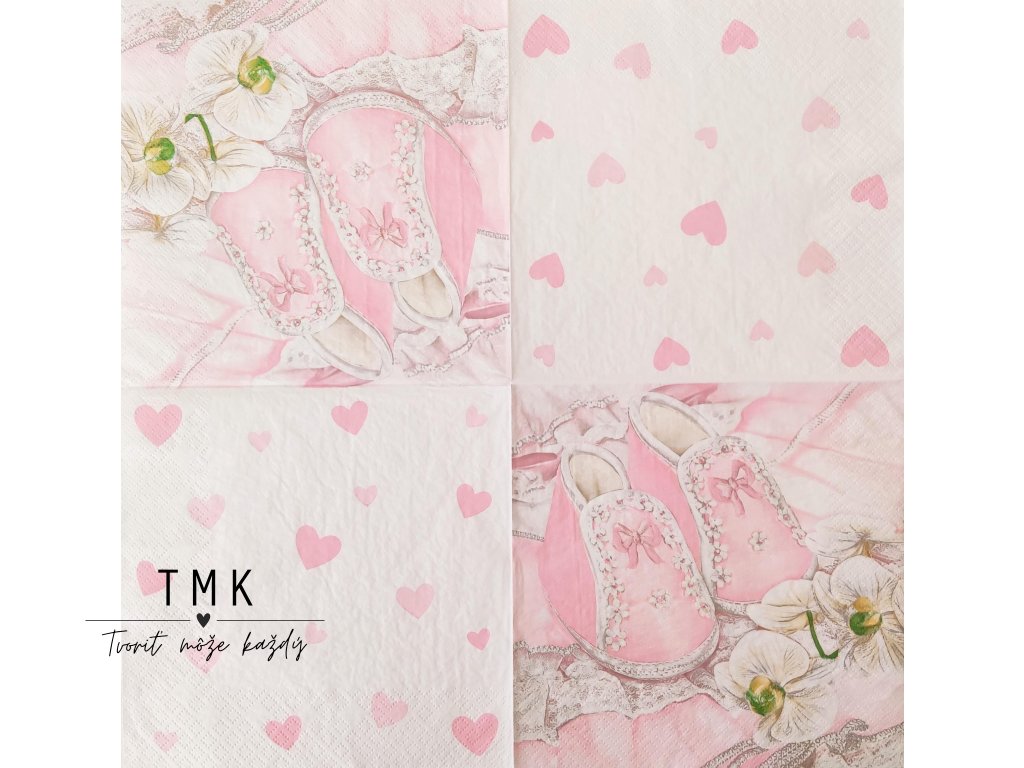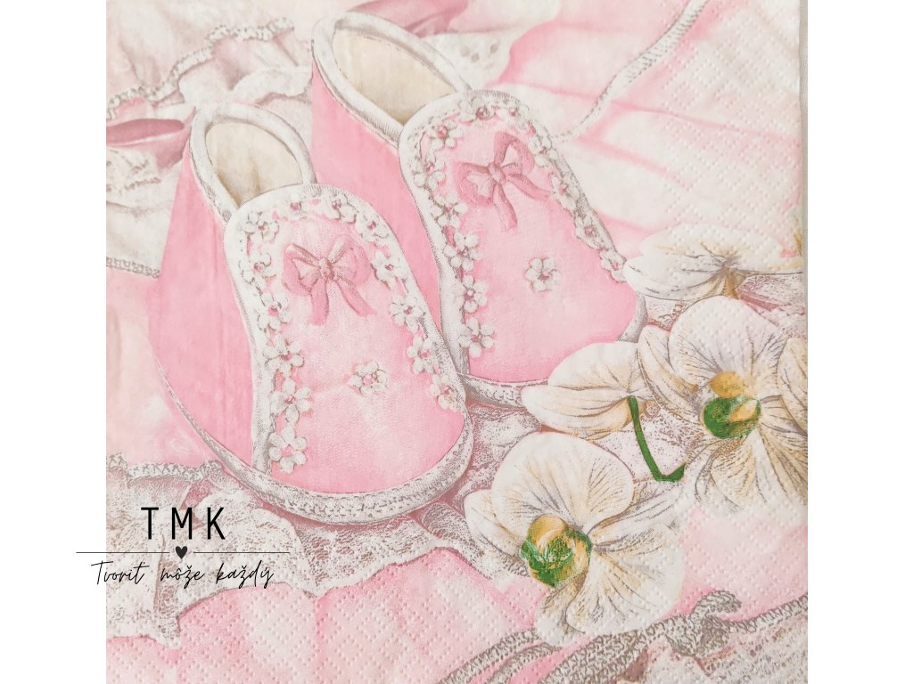 Servítka s detským motívom papučiek. Vhodná na decoupage (servítková technika), ktorú viete použiť na naše dná a vytvoriť tak jedinečný košík.