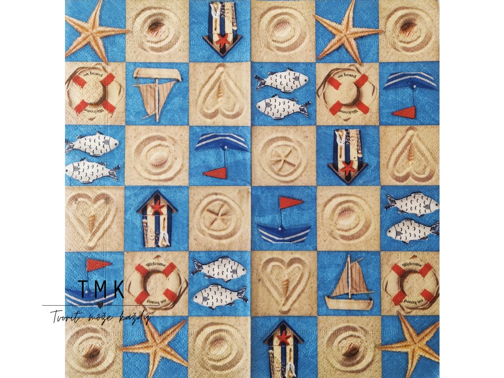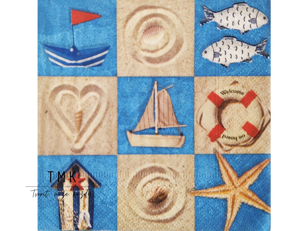 Servítka s motívom pláže. Vhodná na decoupage (servítková technika), ktorú viete použiť na naše dná a vytvoriť tak jedinečný košík.