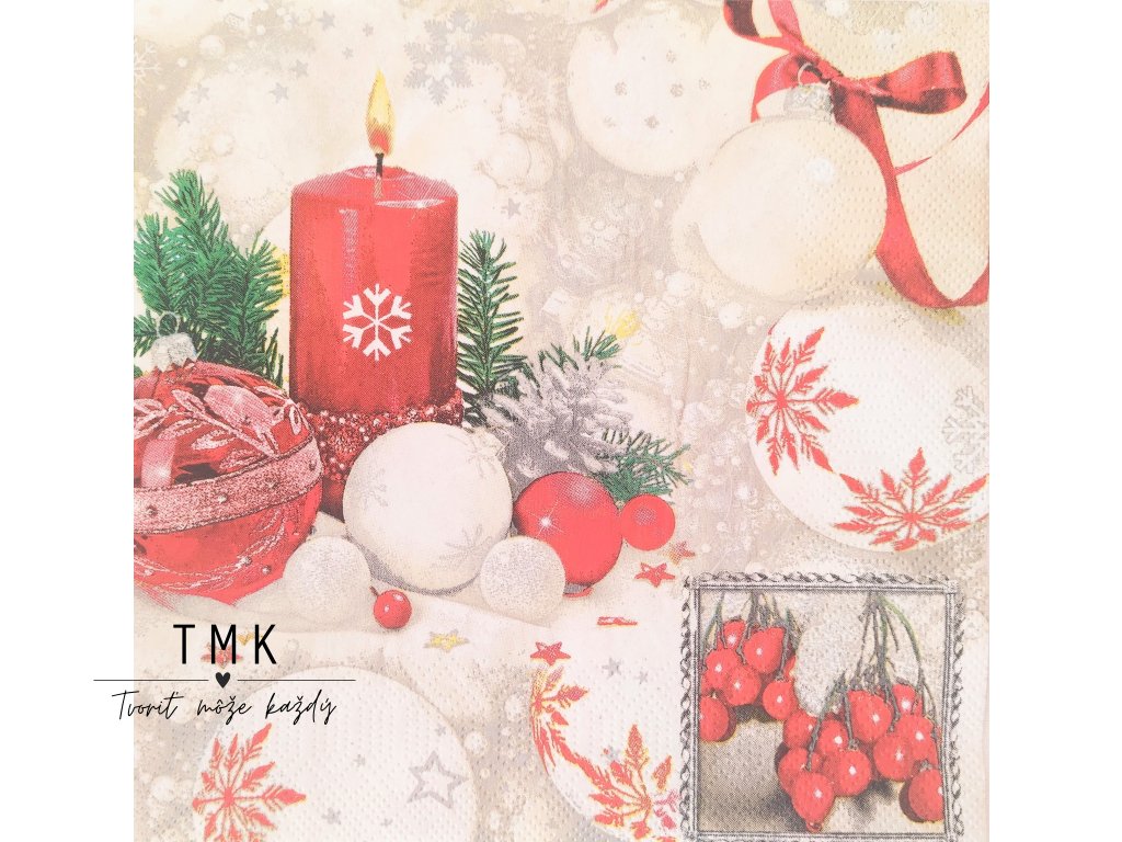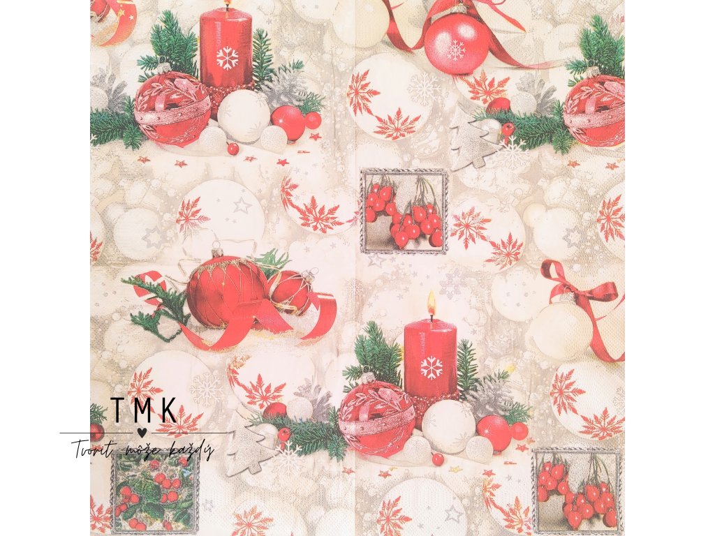 Servítka s vianočným motívom. Vhodná na decoupage (servítková technika), ktorú viete použiť na naše dná a vytvoriť tak jedinečný košík.