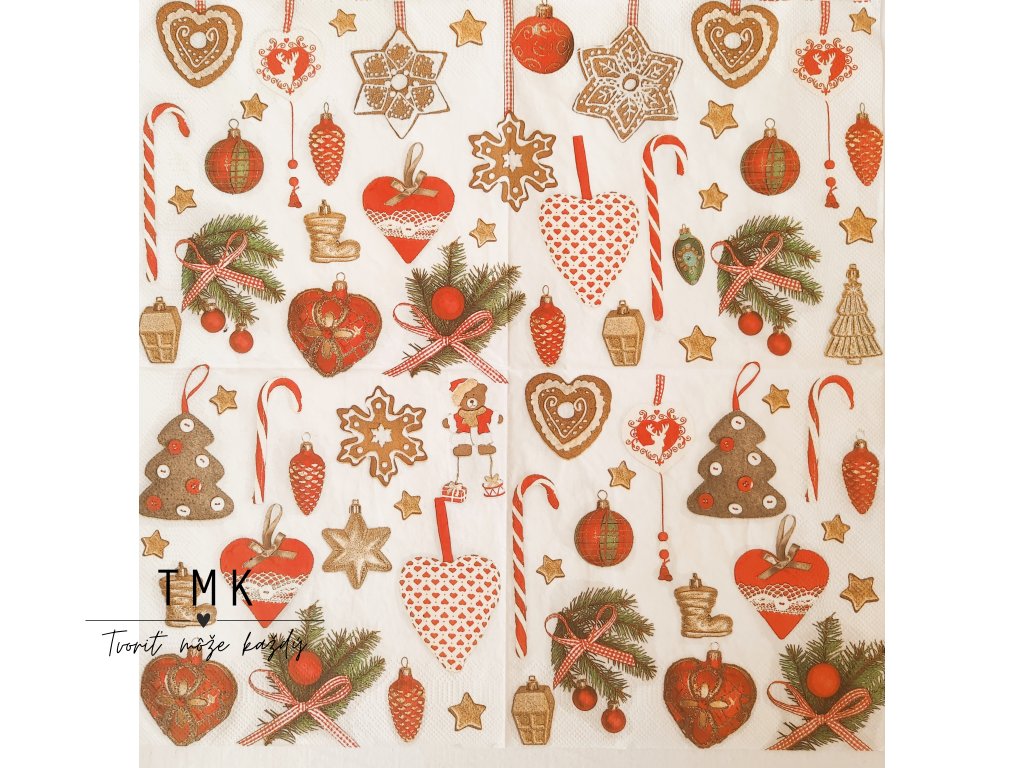 Servítka s vianočným motívom. Vhodná na decoupage (servítková technika), ktorú viete použiť na naše dná a vytvoriť tak jedinečný košík.