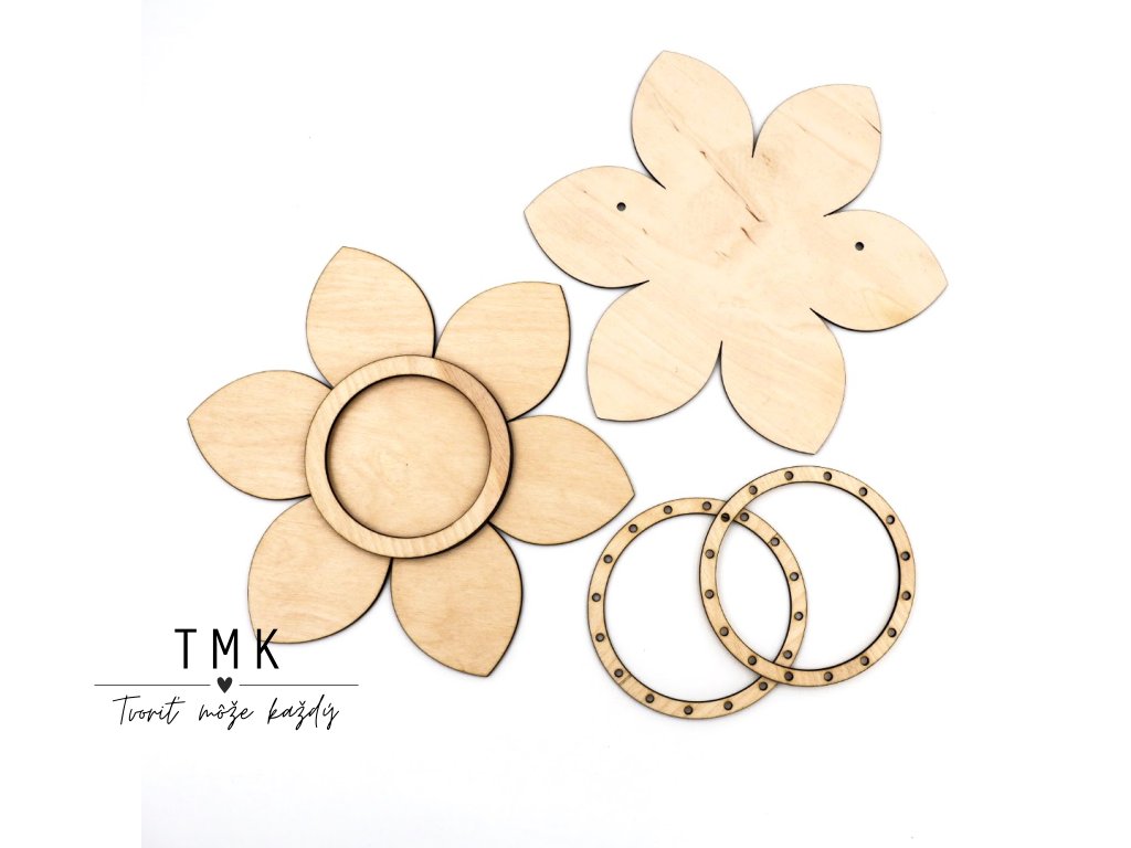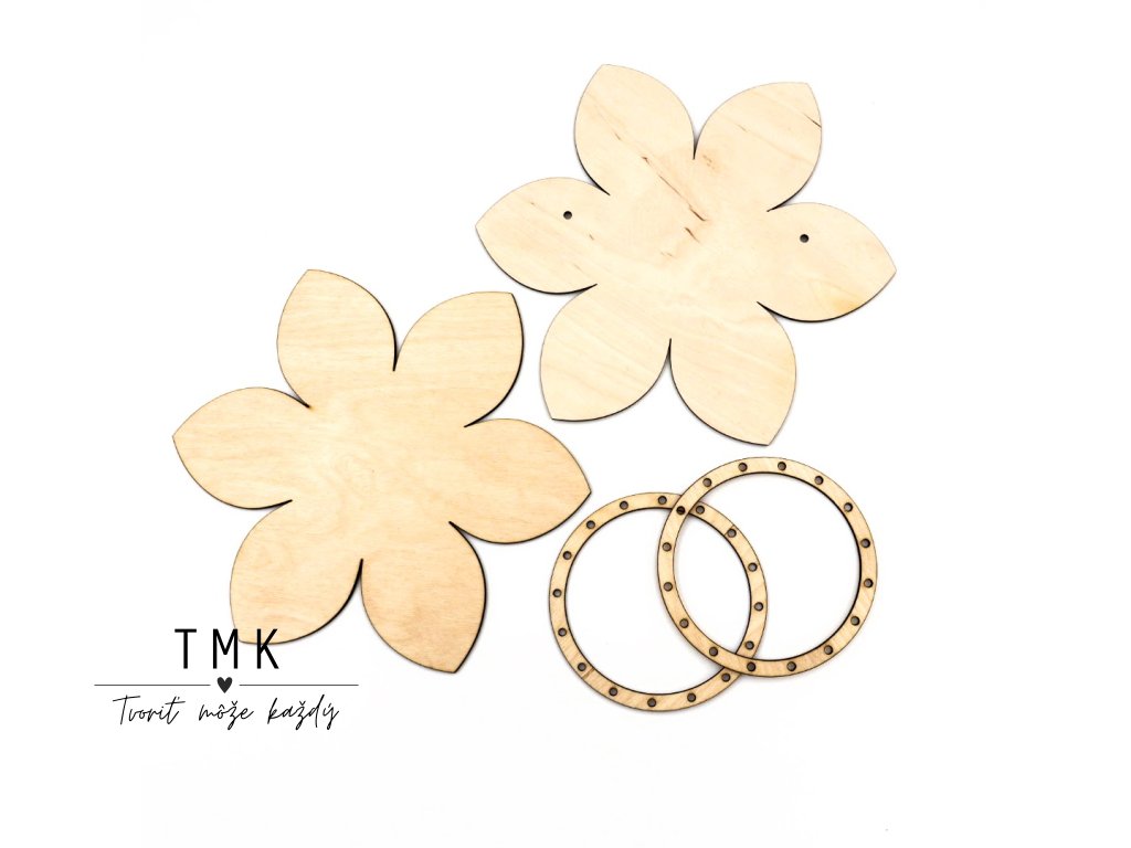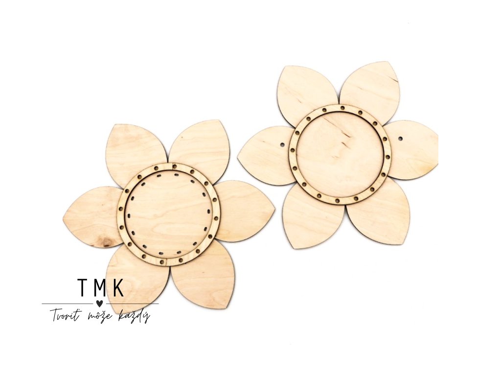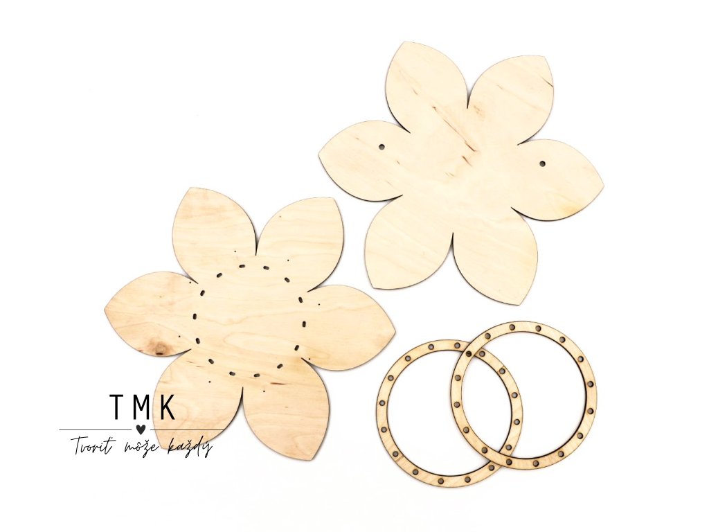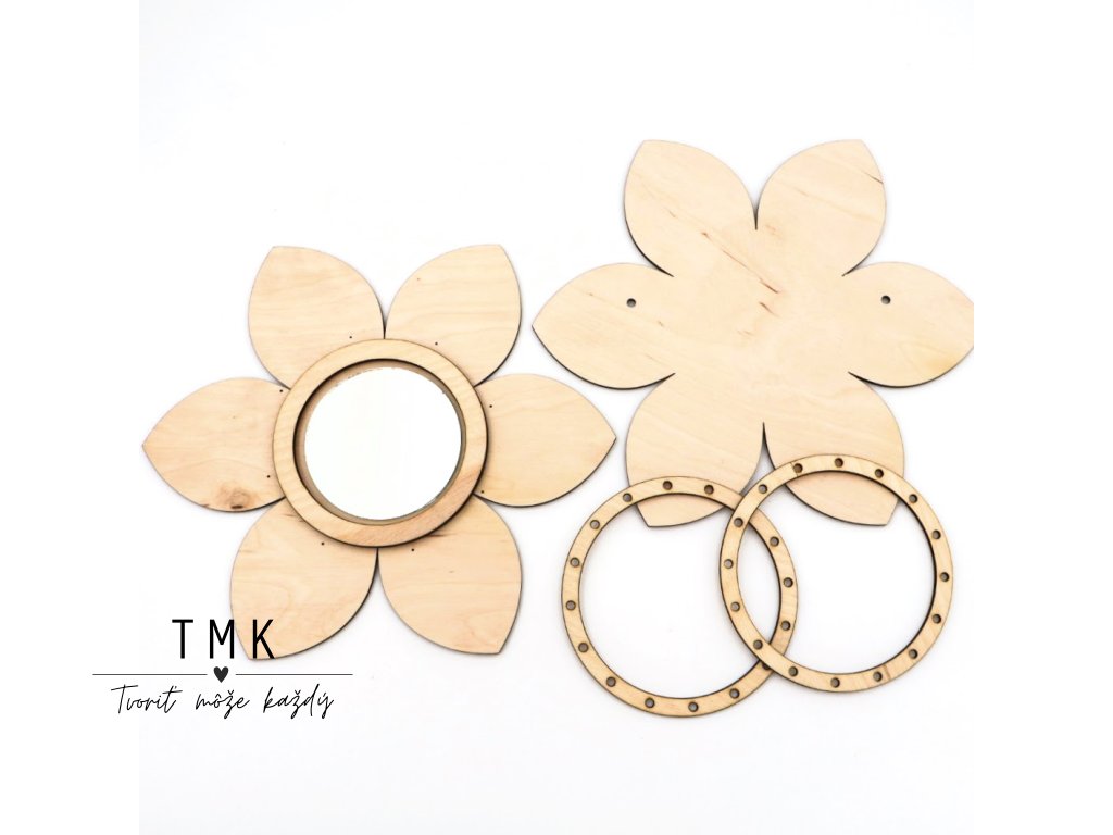 Variant KVET + ZRKADIELKO obsahuje 2x dno v tvare kvetu a 2x lištu na prilepenie osnov. Predné dno má vyrezané otvory na opletenie zrkadielka (2 osnovy = 5mm x 10mm).