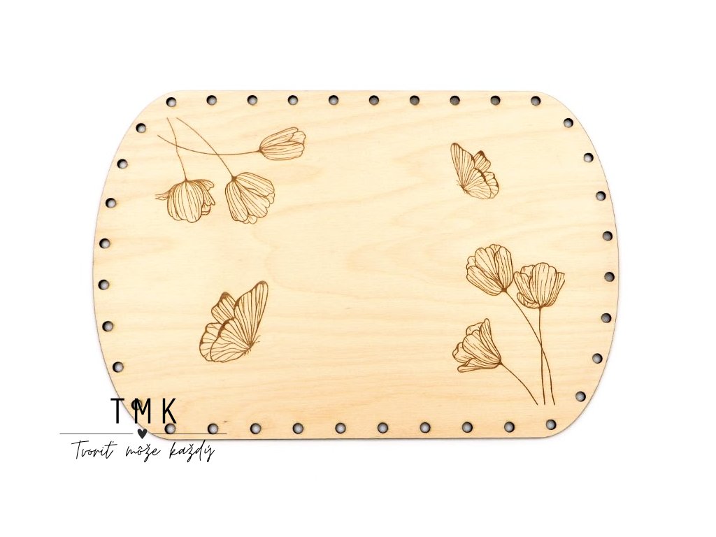 Gravírované pevné dno na výrobu tácky s motívom kvetov a motýľov.