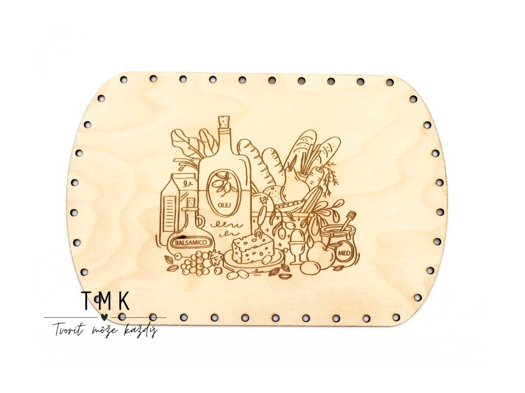 Gravírované pevné dno na výrobu tácky s motívom kuchyne.