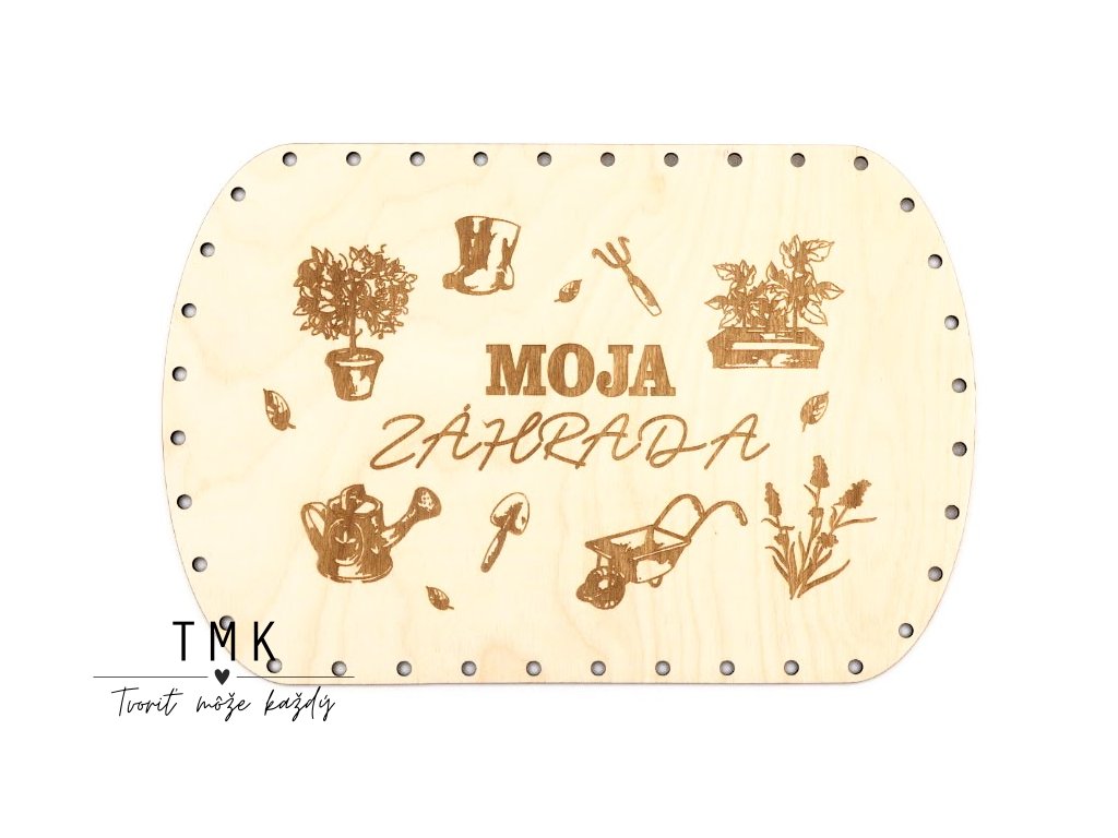 Gravírované pevné dno na výrobu tácky s motívom záhrady.