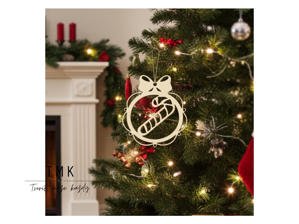 Vneste do svojho domova kúzlo Vianoc s touto drevenou ozdobou s motívom vianočnej lízanky a mašle.
