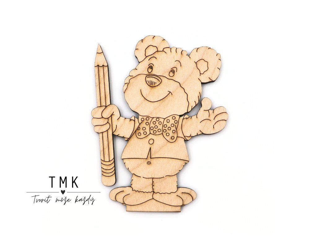 Rozkošná detská postavička medvedíka s ceruzkou. Výrez je prispôsobený na zapichnutie do kruhového alebo oválneho dna. Kreatívne detské rúčky si výrez môžu vyfarbiť alebo inak dotvoriť.