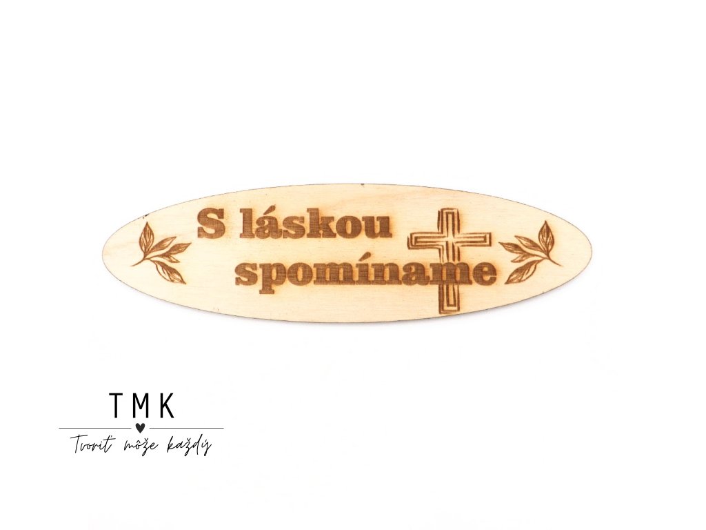 Drevený výrez s textom: S láskou spomíname.
