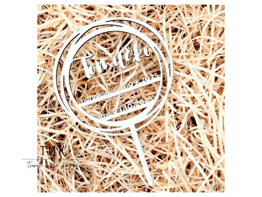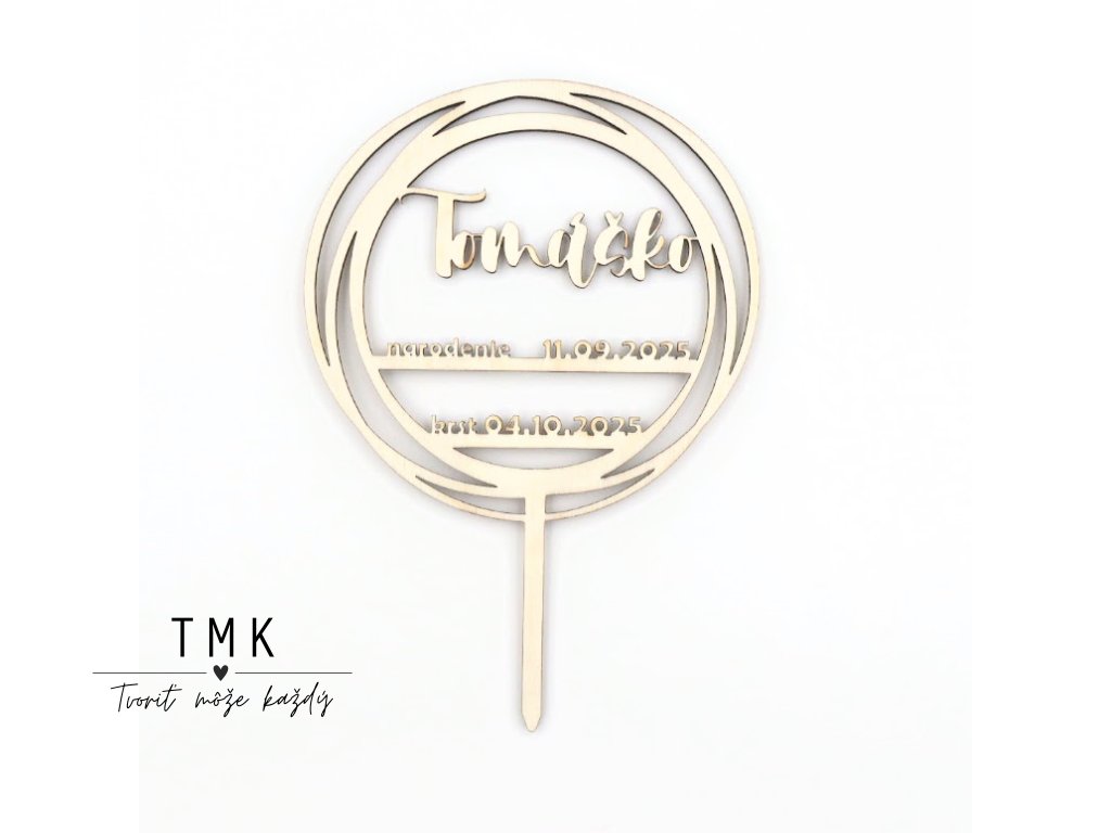 Drevený zápich ku krstu. Dodajte torte jedinečný a prírodný dotyk s našimi drevenými výrezmi.