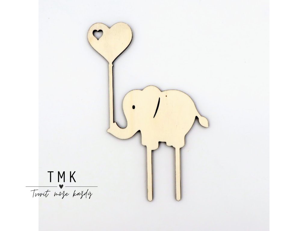 Drevený zápich sloník s balónikom. Dodajte detskej torte jedinečný a prírodný dotyk s našimi drevenými zápichmi.