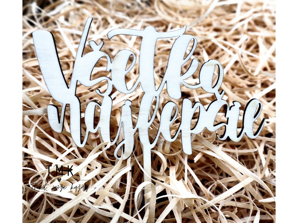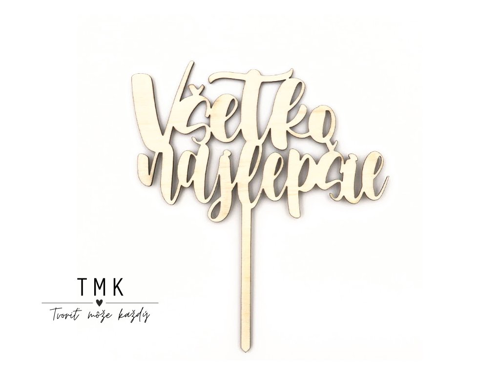 Drevený zápich Všetko najlepšie. Dodajte torte jedinečný a prírodný dotyk s našimi drevenými výrezmi.